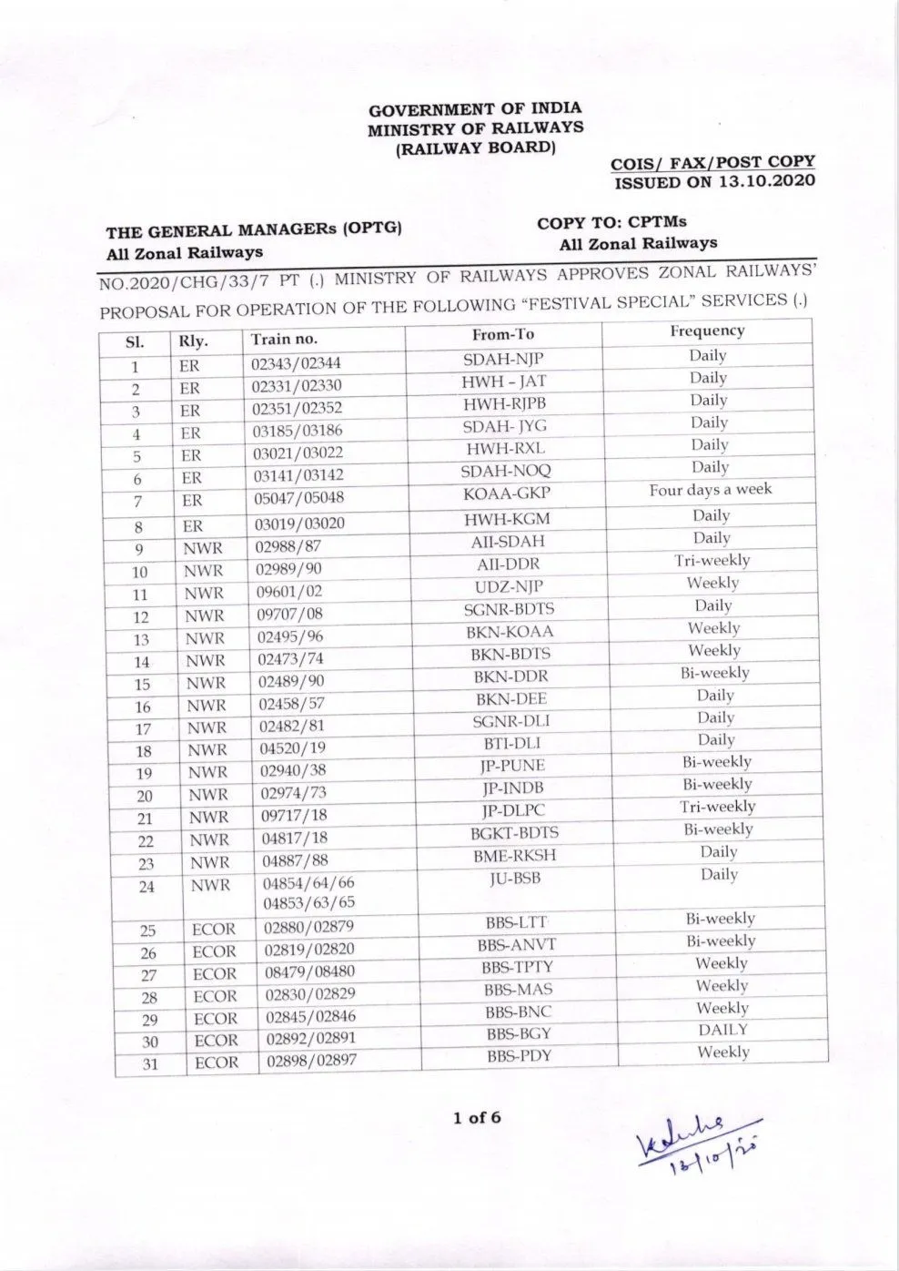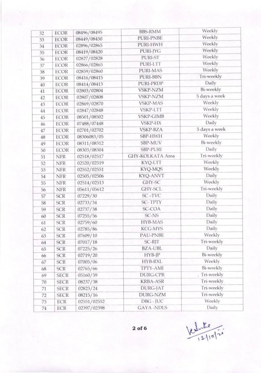 ଆଗକୁ ଦୁର୍ଗାପୂଜା, କାଳିପୂଜା ଓ ଛଟ୍ପୂଜା ଭଳି ପ୍ରସିଦ୍ଧ ପର୍ବ ଆସୁଥିବାରୁ ଏହି ସମୟରେ ଅଧିକ ଭିଡ଼ ଜମିବ। ଆଗାମୀ ଦିନରେ କୋଲକାତା, ପାଟନା, ବନାରସ ଓ ଲକ୍ଷ୍ନୌରେ ସର୍ବାଧିକ ଯାତ୍ରୀ ଭିଡ଼ ଦେଖିବାକୁ ମିଳିବ। ଏଥିପାଇଁ ରେଳବାଇ ପକ୍ଷରୁ ୩୯୨ ଟ୍ରେନ୍ ଚଳାଚଳ ପାଇଁ ଅନୁମତି ମିଳିଛି।