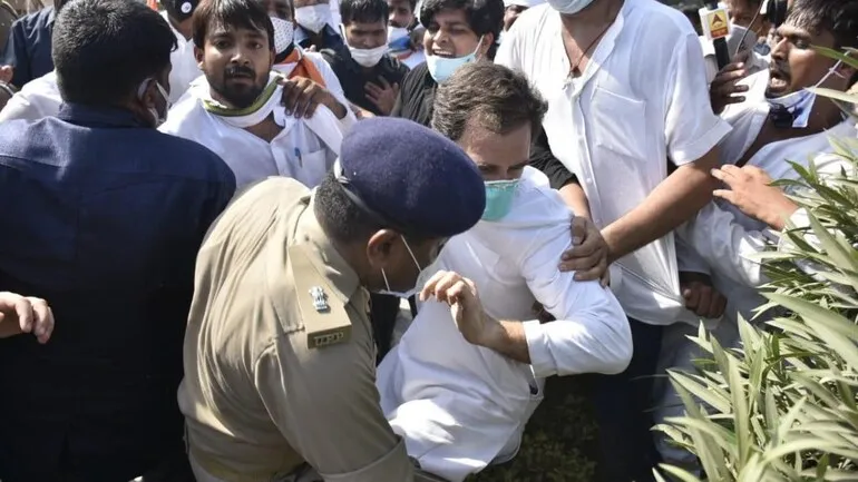 ନୂଆଦିଲ୍ଲୀ: ଉତ୍ତରପ୍ରଦେଶ ହାଥରସ ପୀଡ଼ିତାଙ୍କ ପରିବାରକୁ ଭେଟିବାକୁ ଯାଉଥିବା କଂଗ୍ରେସ ସାଂସଦ ରାହୁଲ ଗାନ୍ଧିଙ୍କୁ ମୃତୟନ ଥିବା ପୁଲିସ କର୍ମୀ ଅଟକାଉଥିବା ବେଳେ ହଠାତ ତଳେ ପଡ଼ିଗଲେ ରାହୁଲ ଗାନ୍ଧି। ଗ୍ରେଟର ନୋଏଡ଼ାରେ ଉତ୍ତରପ୍ରଦେଶ ସୀମା ପରିଚାଳନାରେ ମୁତୟନ ଥିବା ପୁଲିସ କର୍ମଚାରୀମାନେ ରାହୁଲ ଗାନ୍ଧି ଓ ତାଙ୍କ ଟିମ୍କୁ ଅଟକାଇବାକୁ ଚେଷ୍ଟା କରିଥିଲେ। ଏହି ସମୟରେ ଠେଲାପେଲା ହେବାରୁ ତଳେ ପଡ଼ିଯାଇଥିଲେ ରାହୁଲ୍ ଗାନ୍ଧି। ଏହାପରେ ତୁରନ୍ତ କଂଗ୍ରେସ କର୍ମୀମାନେ ସେଠାରେ ଭିଡ଼ ଜମାଇଥିଲା।