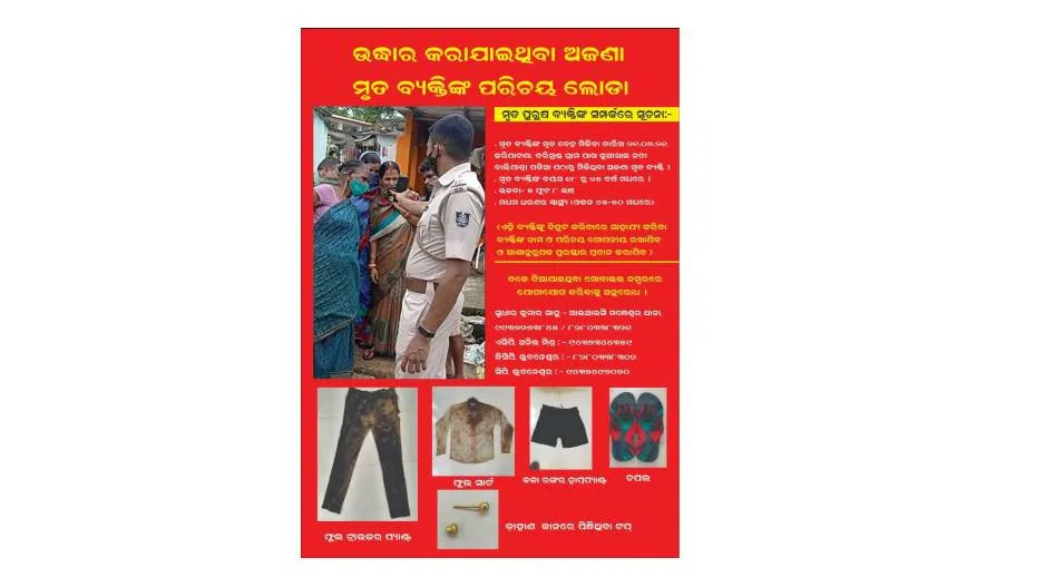 ଜାରି ହୋଇଥିବା ପୋଷ୍ଟରରେ ମୃତବ୍ୟକ୍ତିଙ୍କୁ କେବେ ଓ କେଉଁ ସ୍ଥାନରୁ ଉଦ୍ଧାର କରାଯାଇଥିଲା, ବୟସ, ଉଚ୍ଚତା ଏବଂ ଓଜନ ଉଲ୍ଲେଖ ରହିଛି। ଏହାସହ ମୃତବ୍ୟକ୍ତିଙ୍କ ପୋଷାକ, ଚପଲ ଇତ୍ୟାଦି ମଧ୍ୟ ଉଲ୍ଲେଖ ରହିଛି। ବ୍ୟକ୍ତିଙ୍କୁ ଚିହ୍ନଟ କରିବାରେ ସାହାଯ୍ୟ କରିବା ବ୍ୟକ୍ତିଙ୍କ ନାମ ଓ ପରିଚୟ ଗୋପନୀୟ ରଖାଯାଇ ପୁରସ୍କାର ପ୍ରଦାନ କରାଯିବ ବୋଲି କୁହାଯାଇଛି।