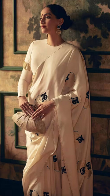 ସୋନମ ଏହି କଷ୍ଟୋମାଇଜ୍ ଶାଢି ସହିତ ଏକ ରାଉଣ୍ଡ ବେକ ବାଲା ଫୁଲ୍ ସ୍ଲିଭ୍ ବ୍ଲାଉଜ୍ ପିନ୍ଧିଛନ୍ତି। ଏହି ଅଭିନେତ୍ରୀ ତାମିଲ ସ୍କ୍ରିପ୍ଟ ବାଲା ଏକ ବାଜୁବନ୍ଧ ମଧ୍ୟ ବାନ୍ଧିଛନ୍ତି।